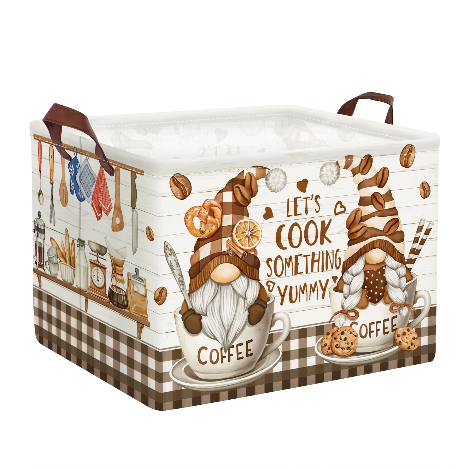 - Coffee Gnome Baby Gift Basket: It features a charming gnome sitting in a coffee cup, surrounded by coffee beans, cups, saucers, and kitchen utensils. Perfect for organizing kitchen essentials and adding a touch of coffee love to your home dcor