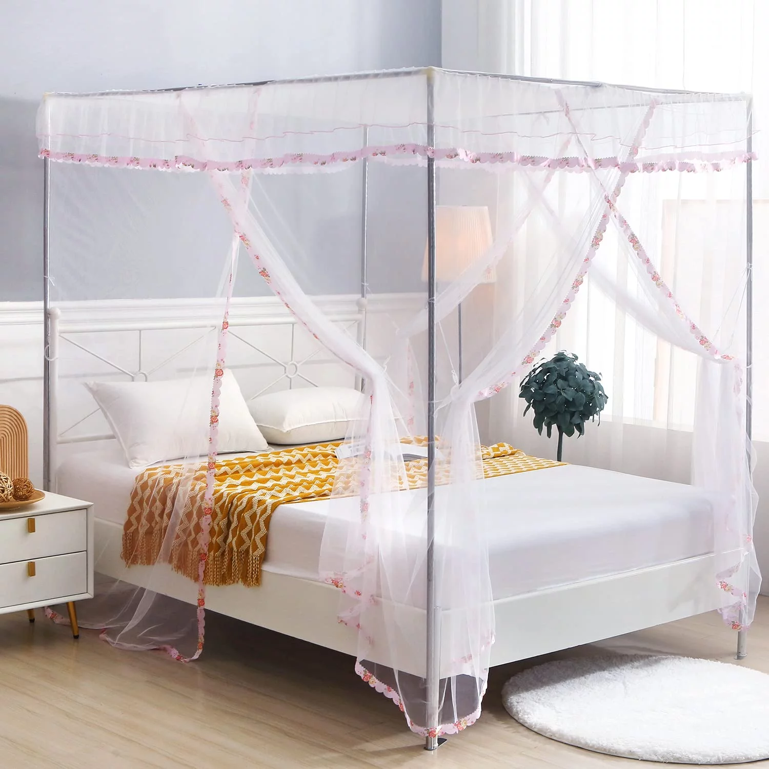 - BEAUTIFUL AND FASHION DESIGN - JQWUPUP Luxurious Canopy Bed Curtains with rich flower decoration and 3 openings, create a beautiful princess bed and a dramatic more romantic look in bedroom.