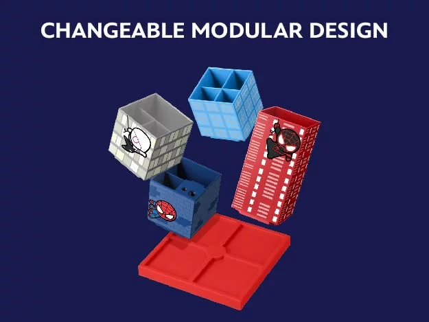 - MODULAR DESIGN: Perfect accessory for any Marvel movie fan's desk. Measuring 15cm (5.9") square, this organizer features four moveable storage blocks, allowing you to customize your storage needs.