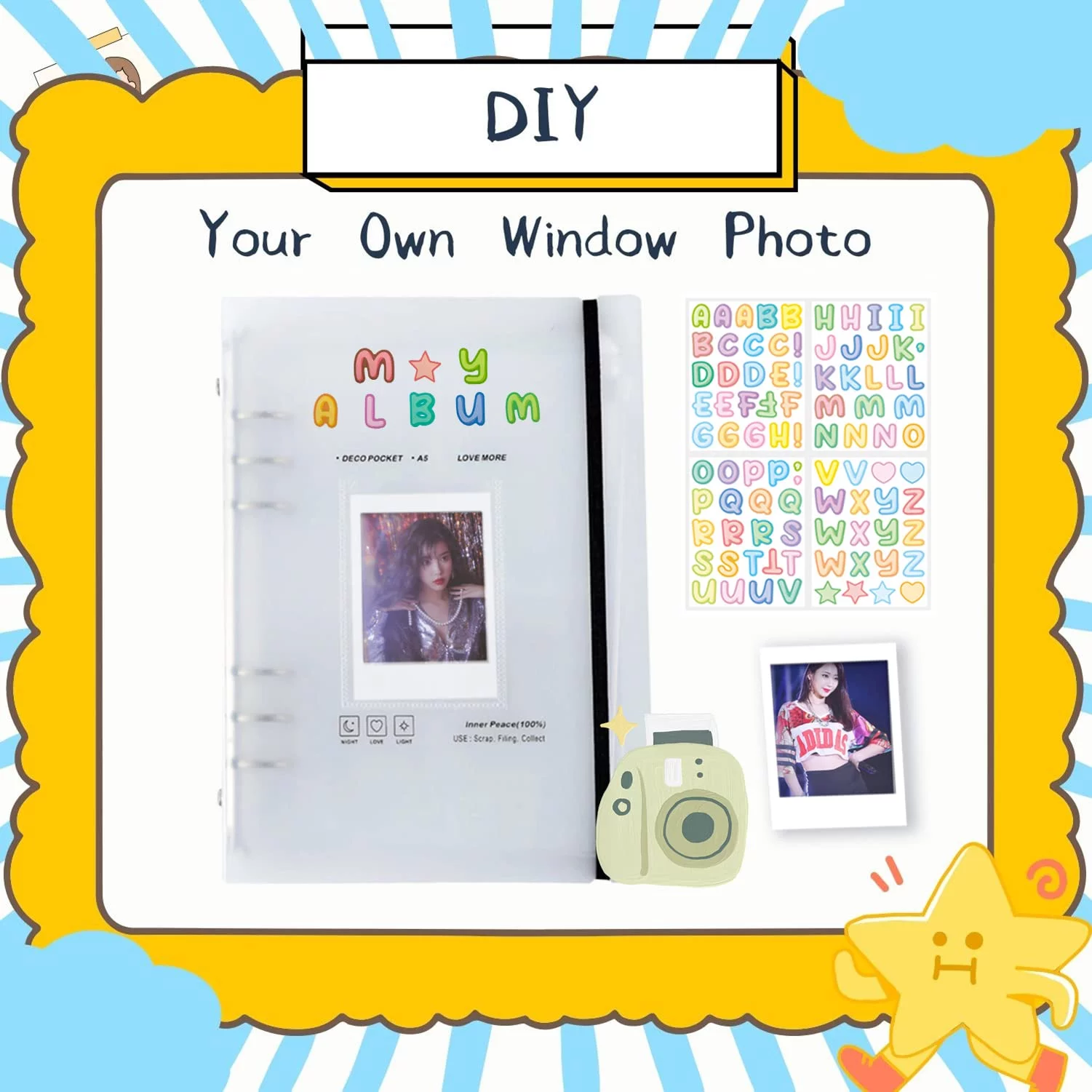 - ??Creative Design & DIY IT?: The A5 photocard binder with simple and stylish practical design, very suitable for idol photocards storage. There is a 3 inch pocket inside the cover, you can put your favorite photo as the cover, and you can also use our free letter sticker to DIY your album, make it you unique kpop album !