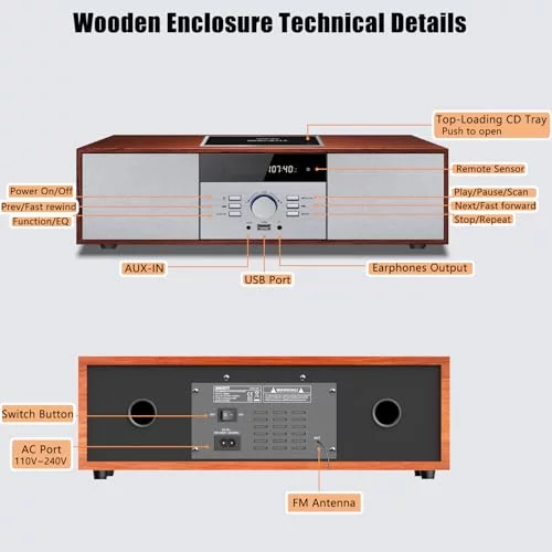 - USB & AUX & Headphone Player: Ideal for any home setting and any genre of music. play MP3s/WMA via USB or even use the 3.5mm Aux input to play audio from other devices.